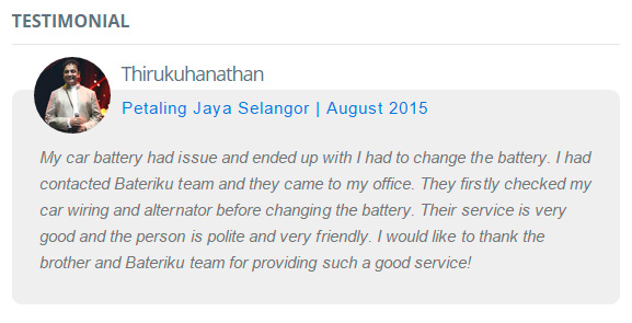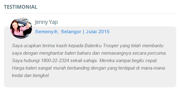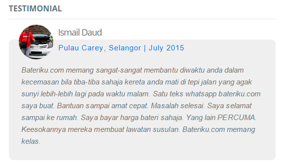 Anda juga boleh membaca testimoni-testimoni mereka yang pernah menggunakan perkhidmatan Bateriku.com.