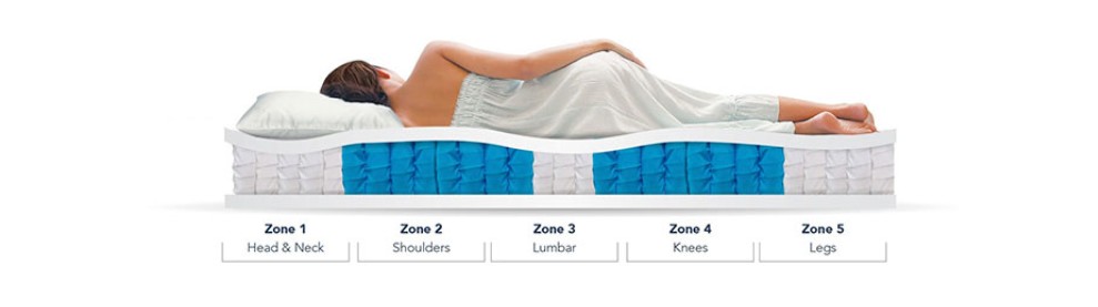 5 Zone Pocket Spring adalah satu sistem sokongan yang direka khas untuk memberikan sokongan badan terbaik.