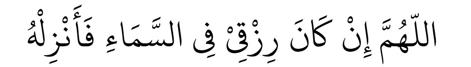 Allahumma inkaana rizqi fissamaa’i fa’anzilhu