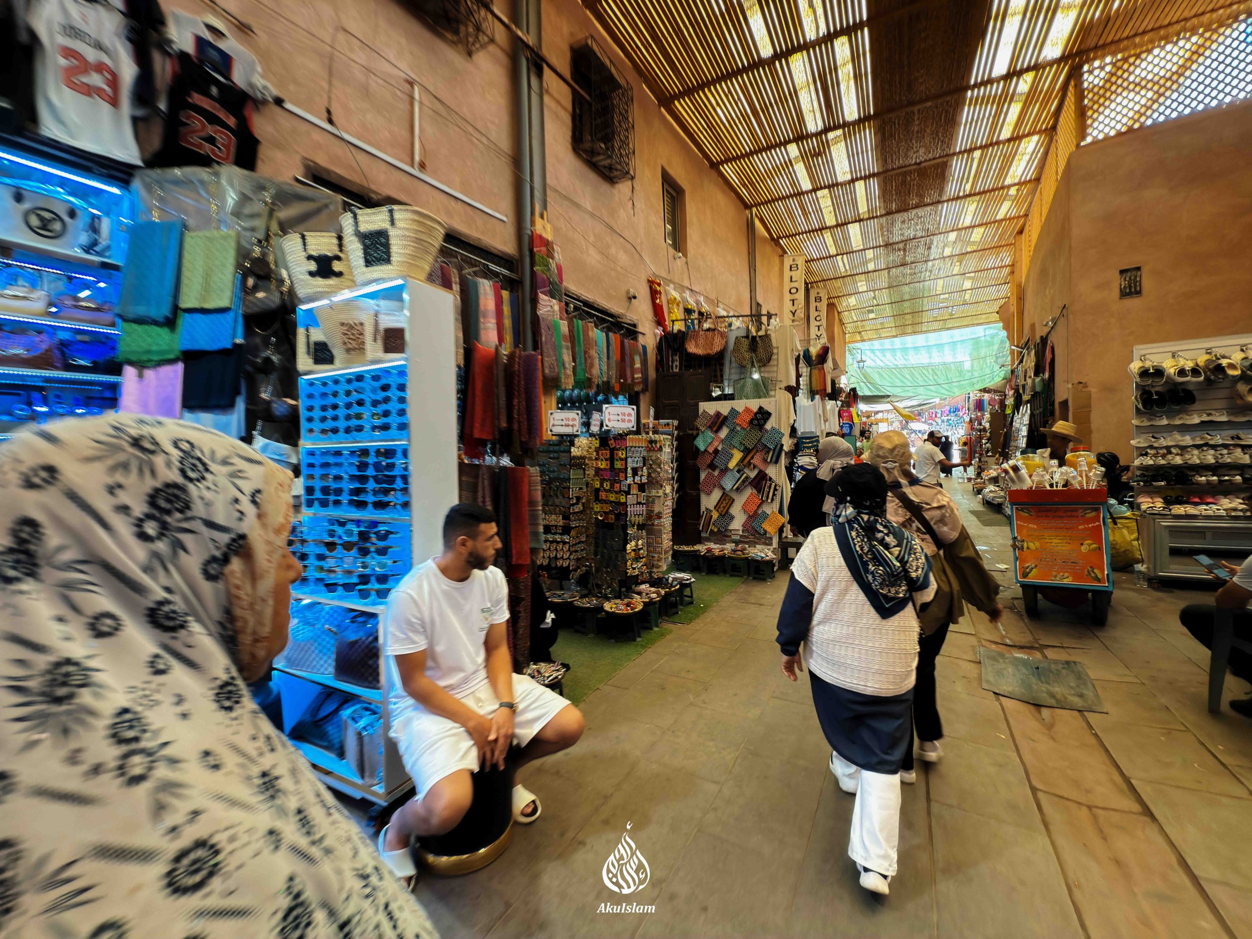 Di souq, suasana menjadi lebih hidup melalui pasar tradisional yang padat dengan warna dan suara. Di sinilah pengunjung benar-benar memahami jiwa Marrakech. Ketika di tengah kesibukan dunia, masih ada kehangatan manusia, kejujuran rezeki, dan keindahan hidup sederhana.